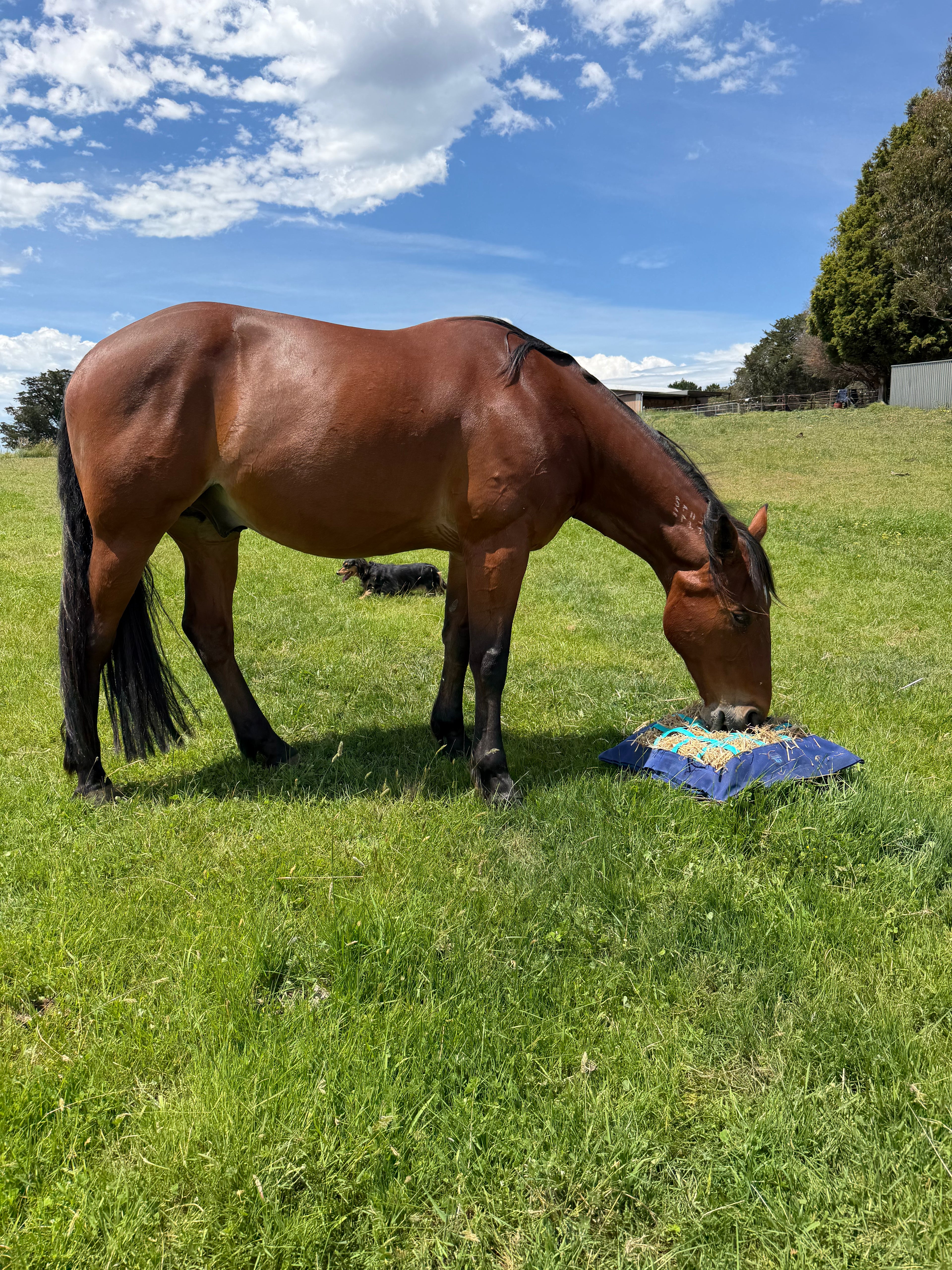 The Ground Grazer began in my own paddock as a simple solution to one very food-aggressive horse. He would finish his feed, push the others away, steal extra meals and rip rugs straight off their backs. Nothing was working — until I made the first Ground Grazer.